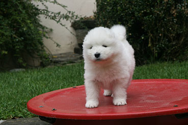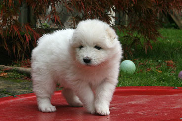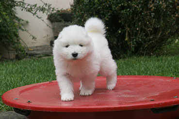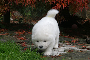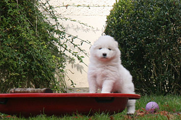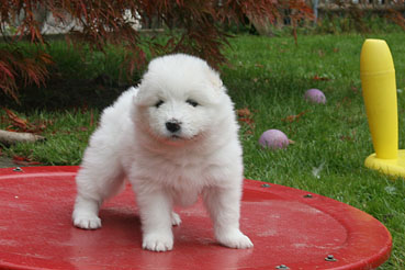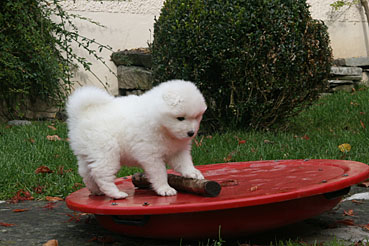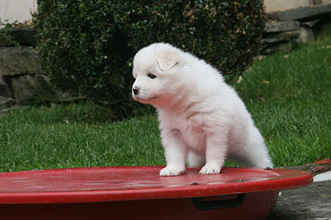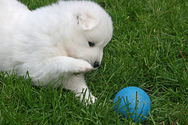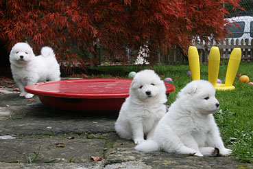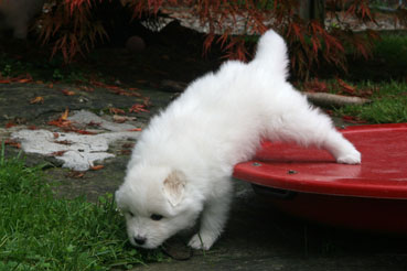 Die Welpen durfte das 1. Mal ins Freie. Neugierig wurde alles beschnuppert und wie bei allen Welpen war das rote Wackelbrett der Anziehungspunkt Nr. 1
