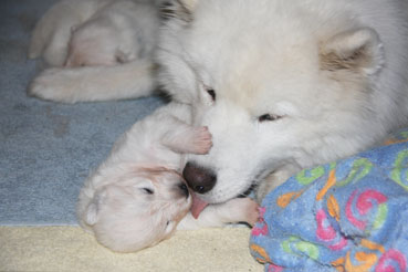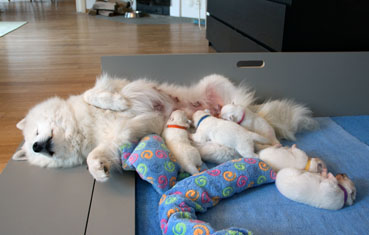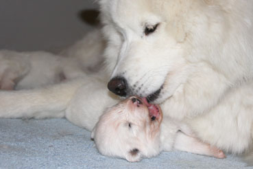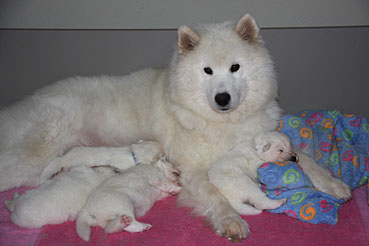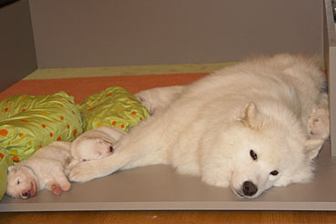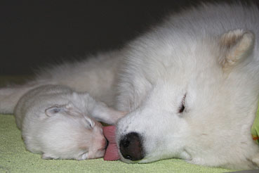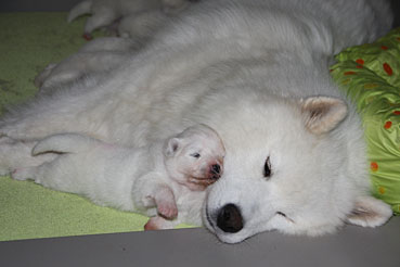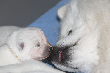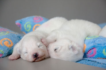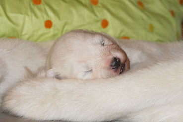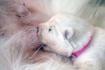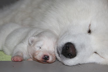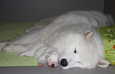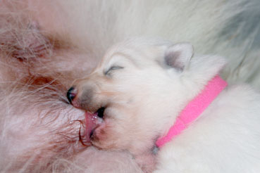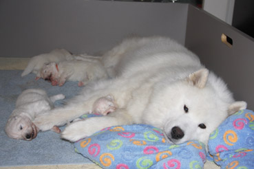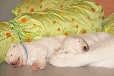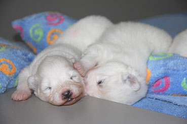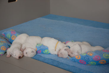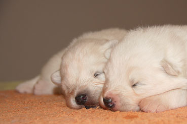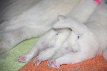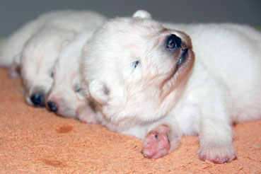 Die Welpen zeigen sich sehr ruhig und zufrieden.