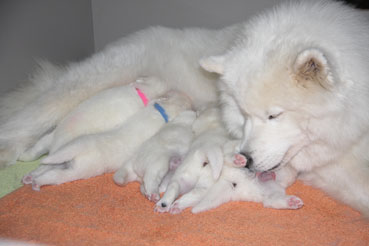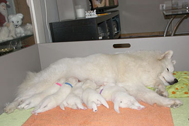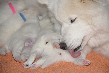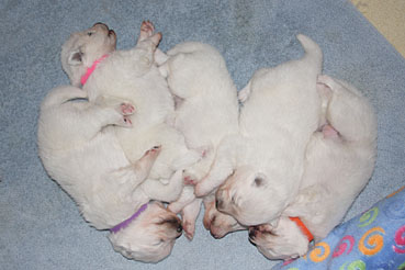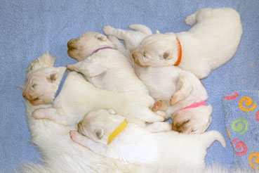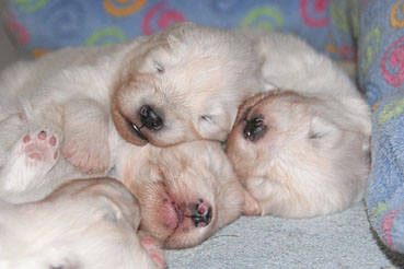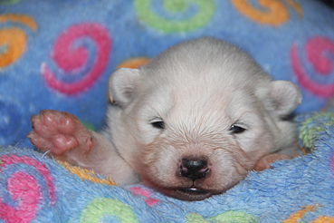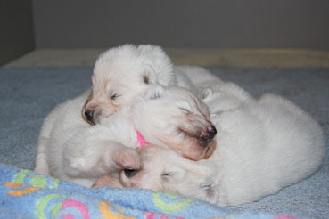 Hier kann man die Entwicklung der Welpen Woche für Woche verfolgen: