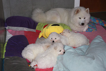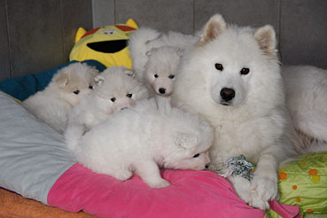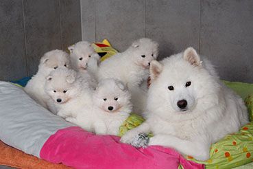 Hier kann man die Entwicklung der Welpen Woche für Woche verfolgen: