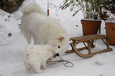 Trotz Schnee und eisiger Kälte geniessen die Kleinen das Spiel im Freien.