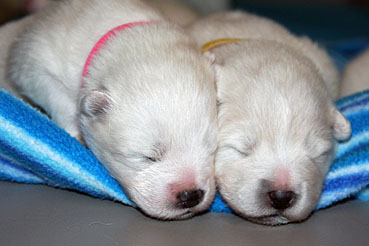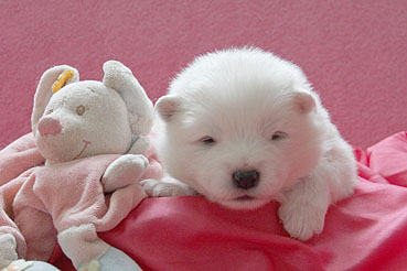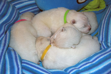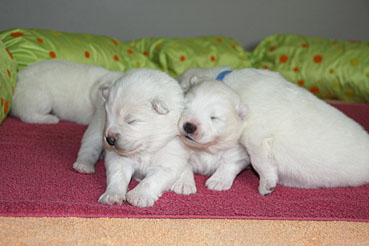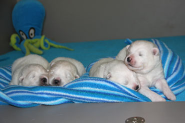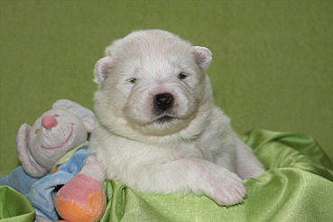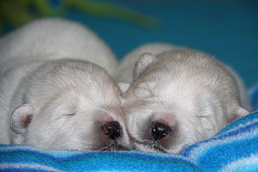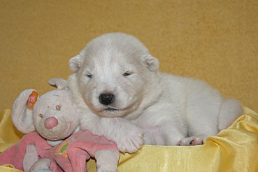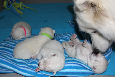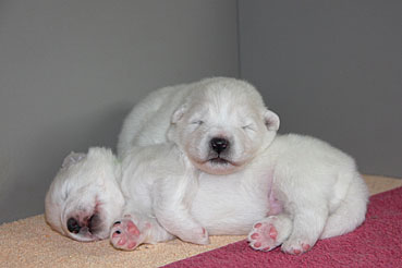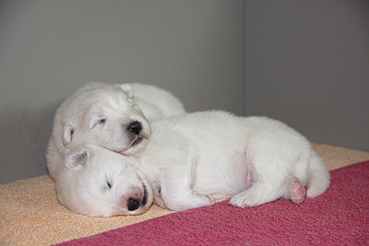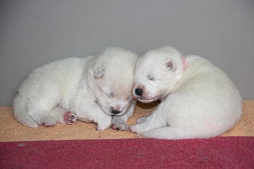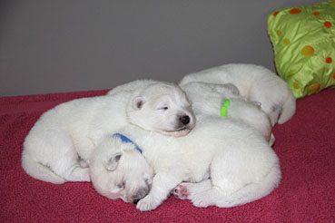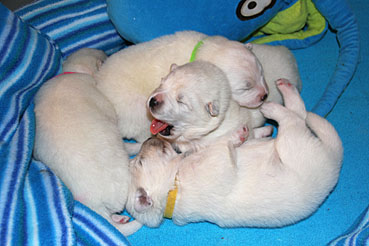 Hier kann man die Entwicklung der Welpen Woche für Woche verfolgen: