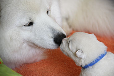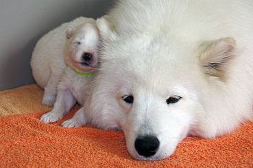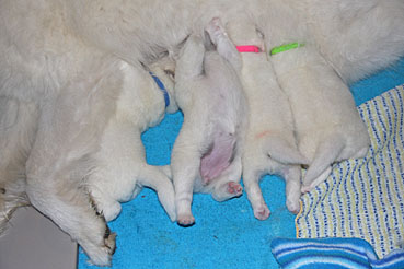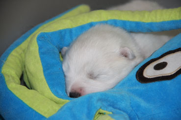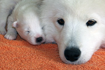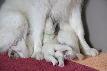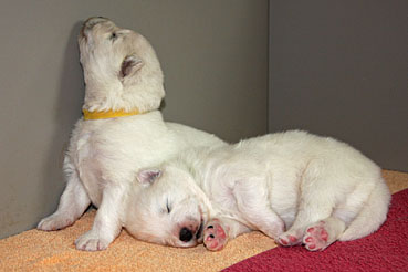 Die Welpen zeigen sich sehr ruhig und zufrieden.